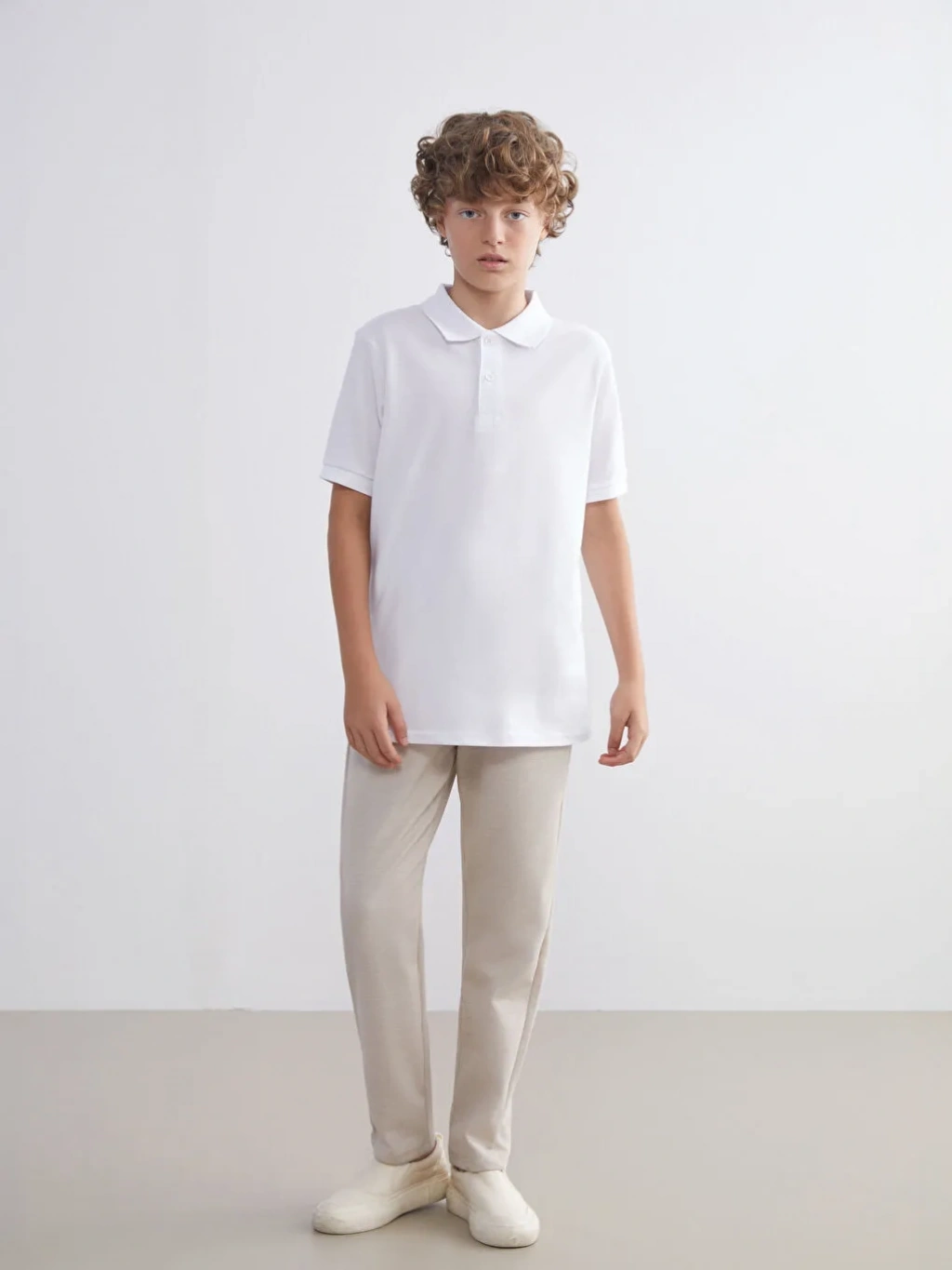 Kids Beyaz Polo Yaka %100 Pamuk Basic Erkek Çocuk Tişört