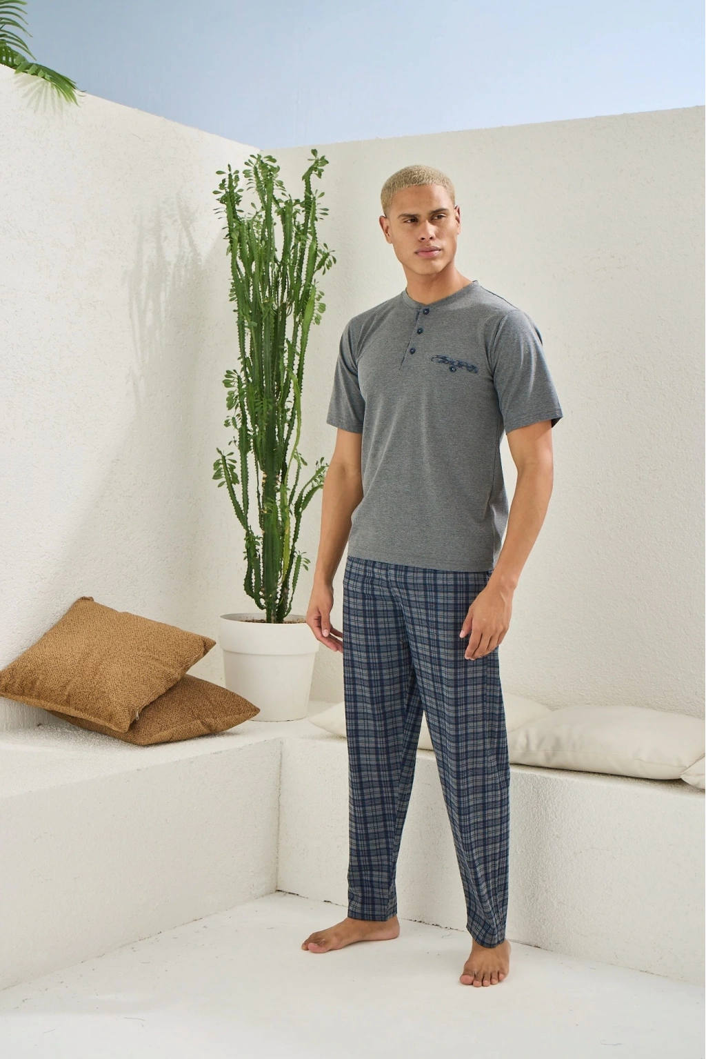 Kapitex 5817 Erkek Uzun Kol Düğme Yaka Pijama Takımı