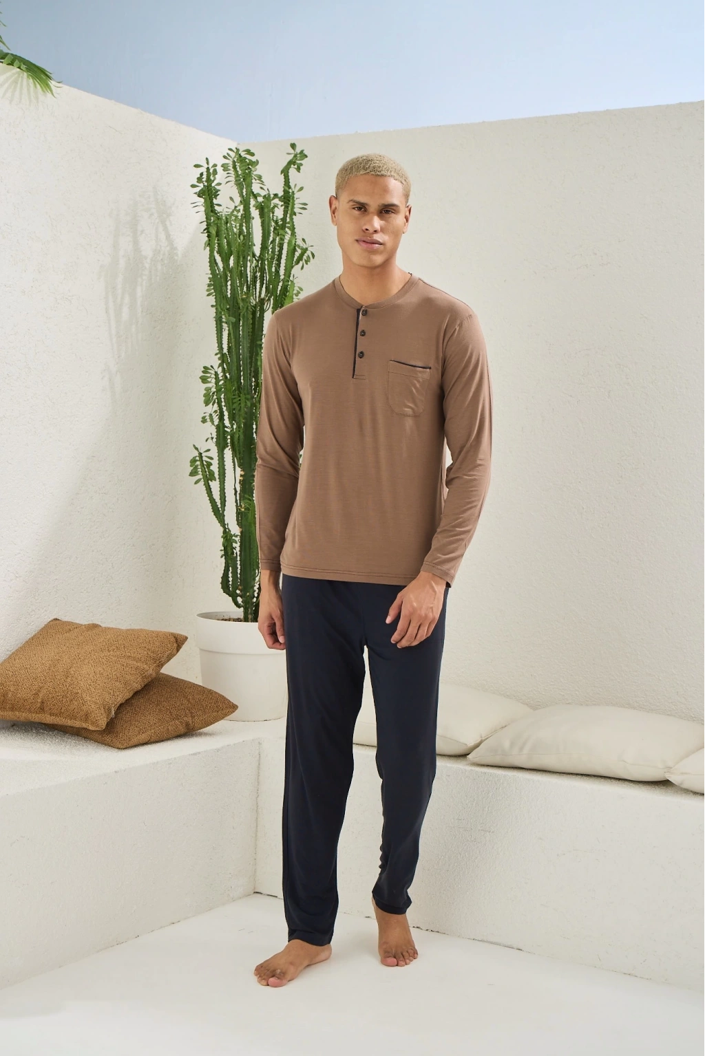Kapitex 5817 Erkek Uzun Kol Düğme Yaka Pijama Takımı