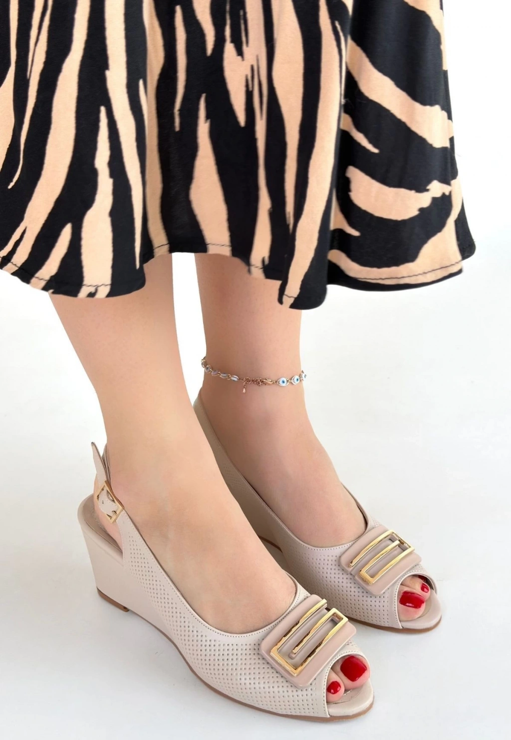 Mamba Bej Cilt Dolgu Topuk Ayakkabı