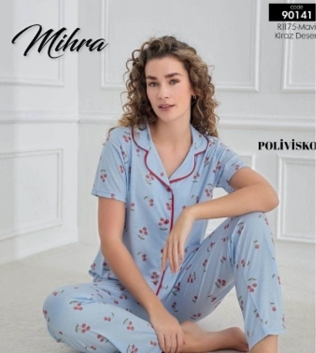 Mihra 90141 Kadın Boydan Düğmeli Pijama Takımı