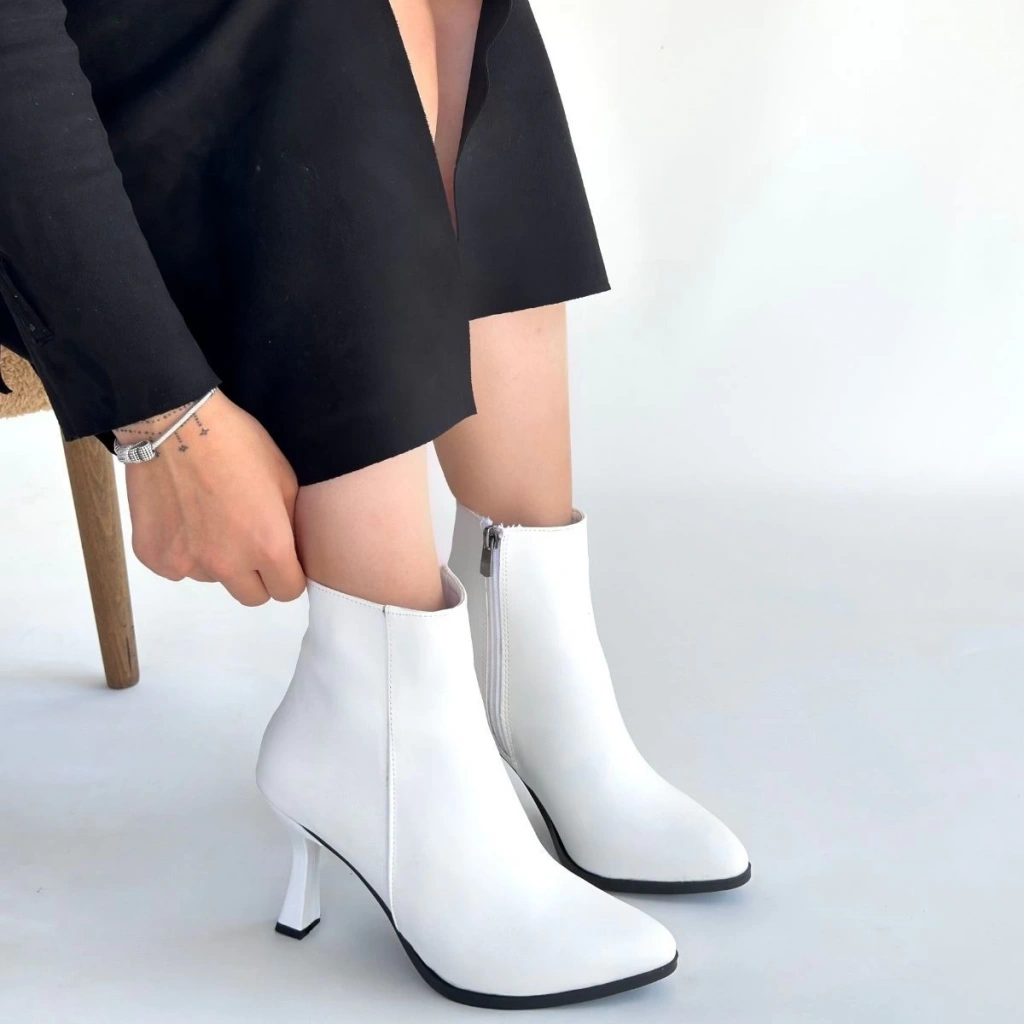 Mişha Beyaz Cilt Topuklu Bot