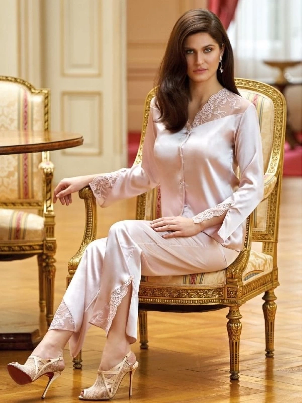 PJS 28019 Kadın Uzun Kol Desenli Gecelik