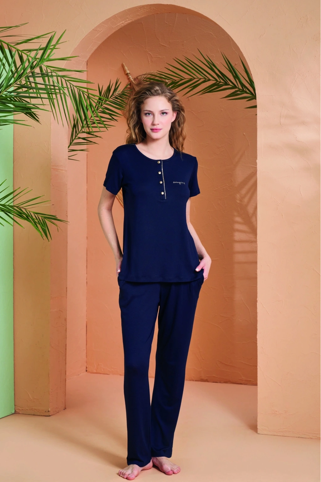 Pjs 28064 Kadın Düğmeli Pijama Takım