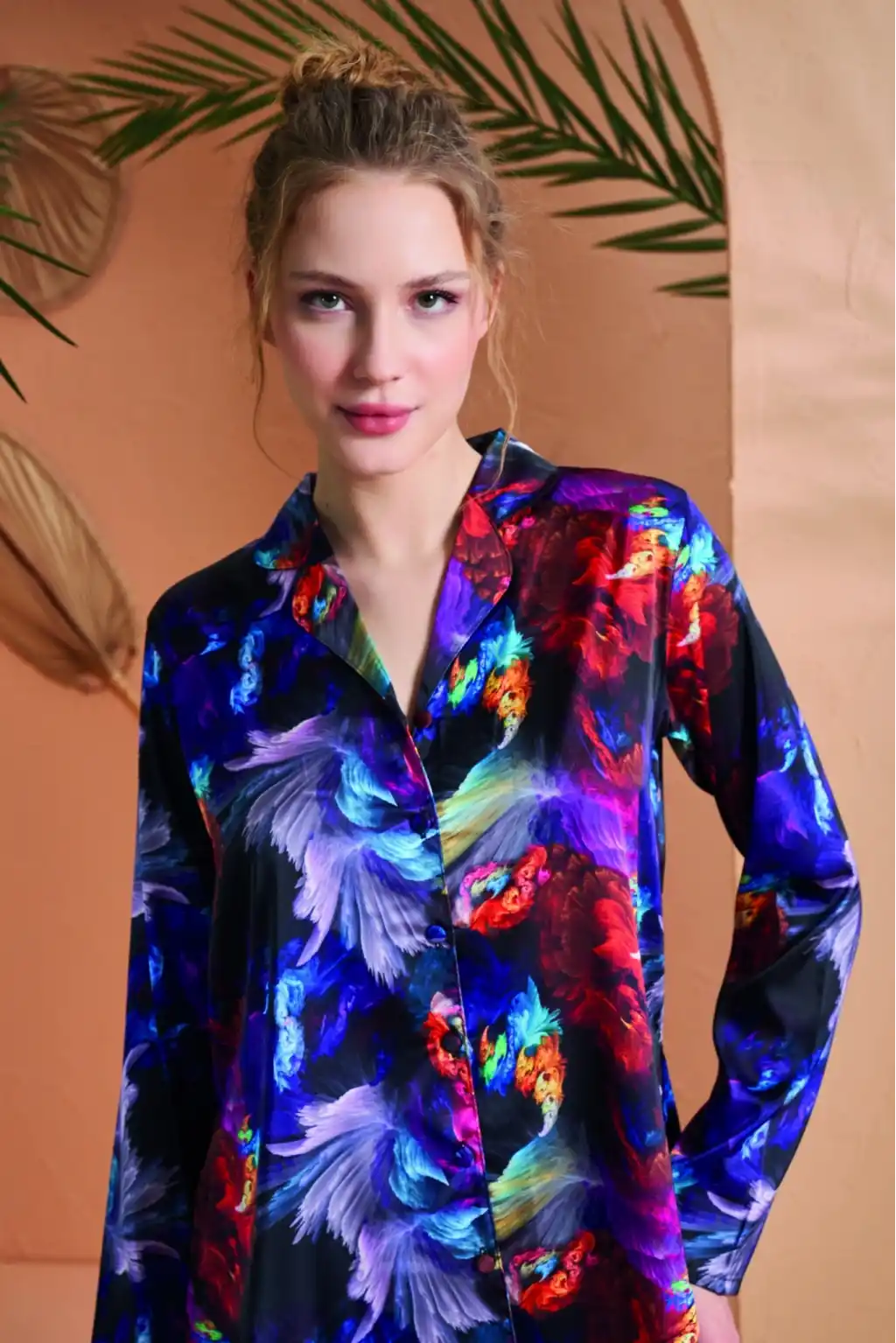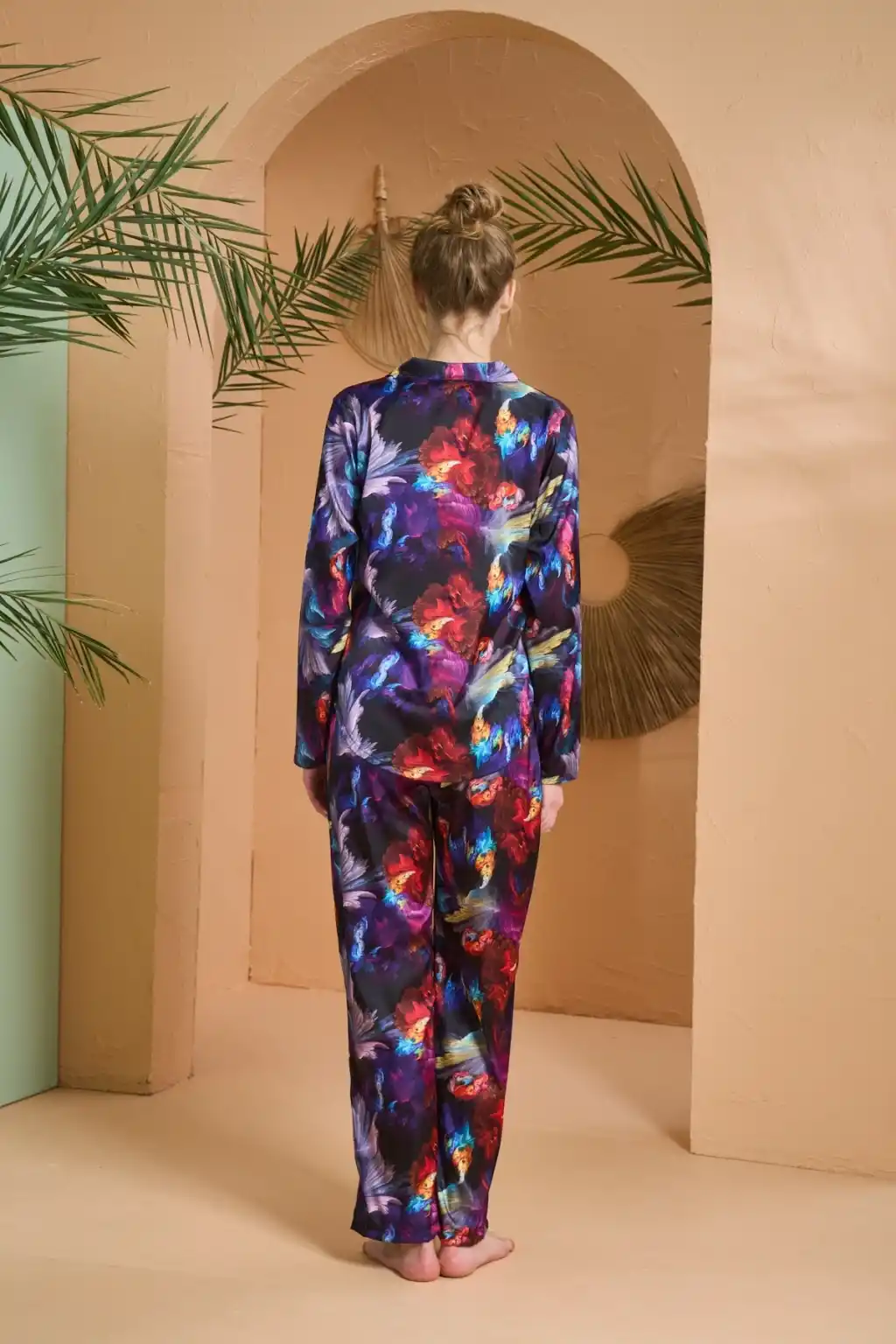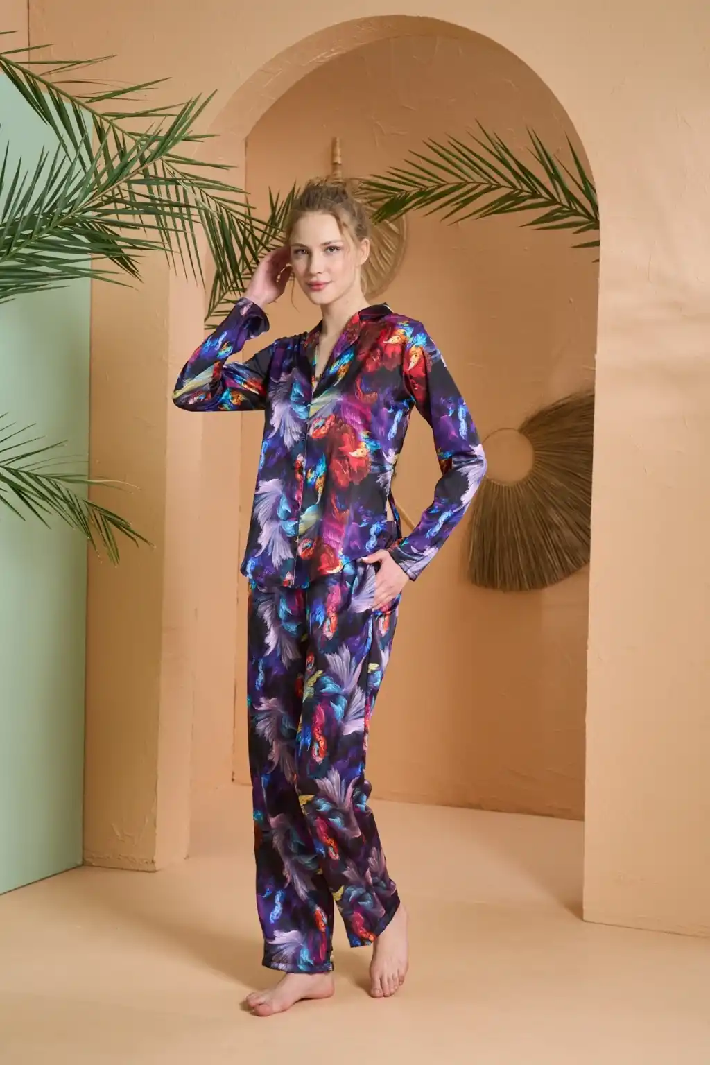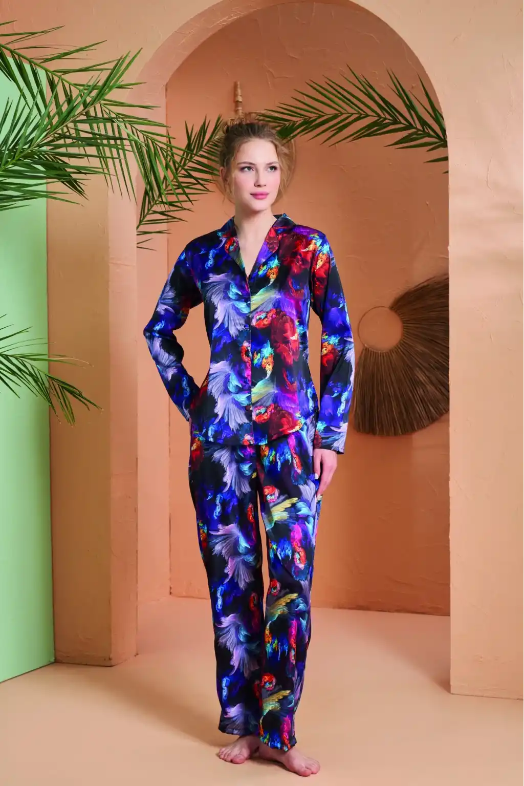 Kocabey KKT-26158K Kadın Apaj Yaka Düğmeli Pijama Takımı