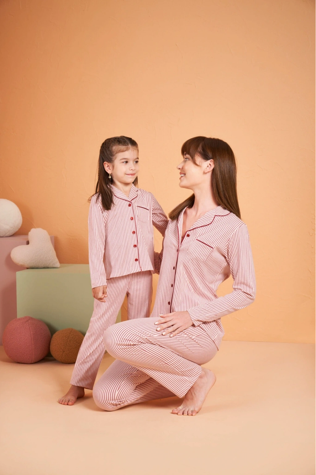 PJS 28081 Kadın Uzun Kol Yuvarlak Yaka Kalpli Pijama Takım
