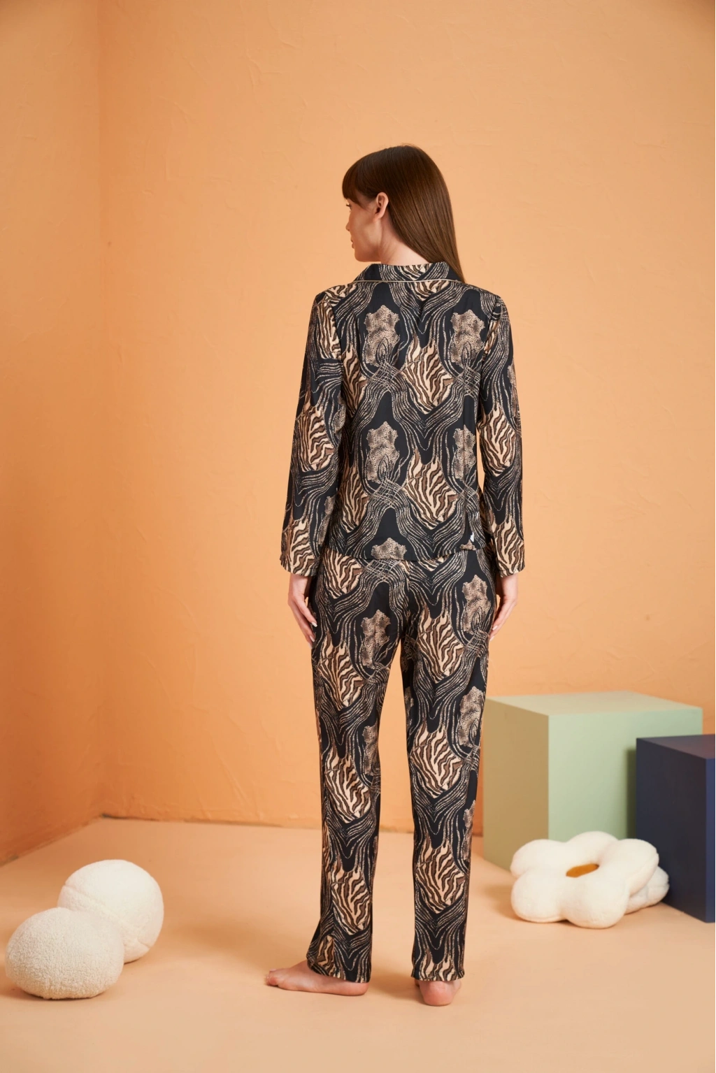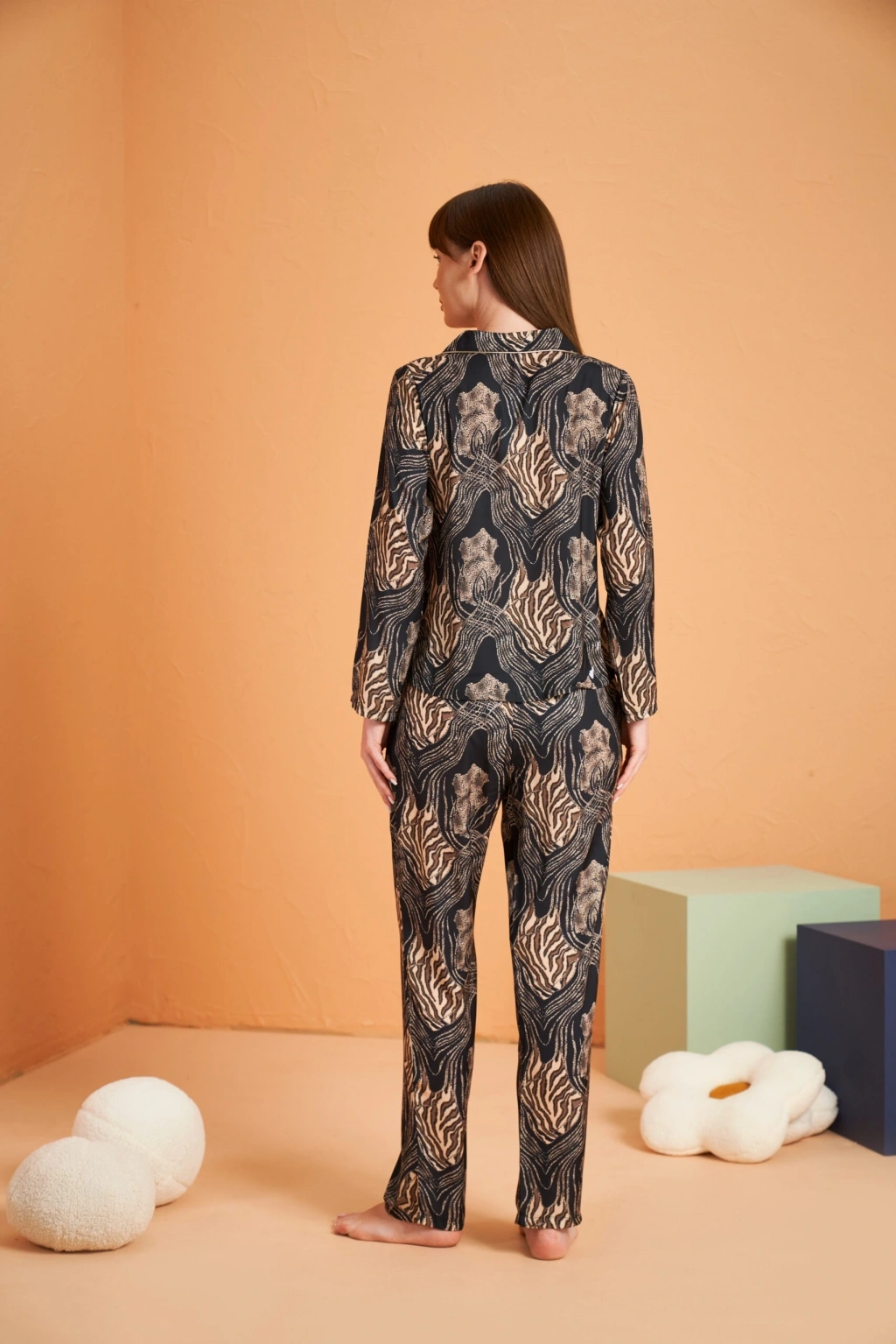 Pjs 28039 Kadın Uzun Kol Boydan Düğmeli Desenli Pijama Takımı