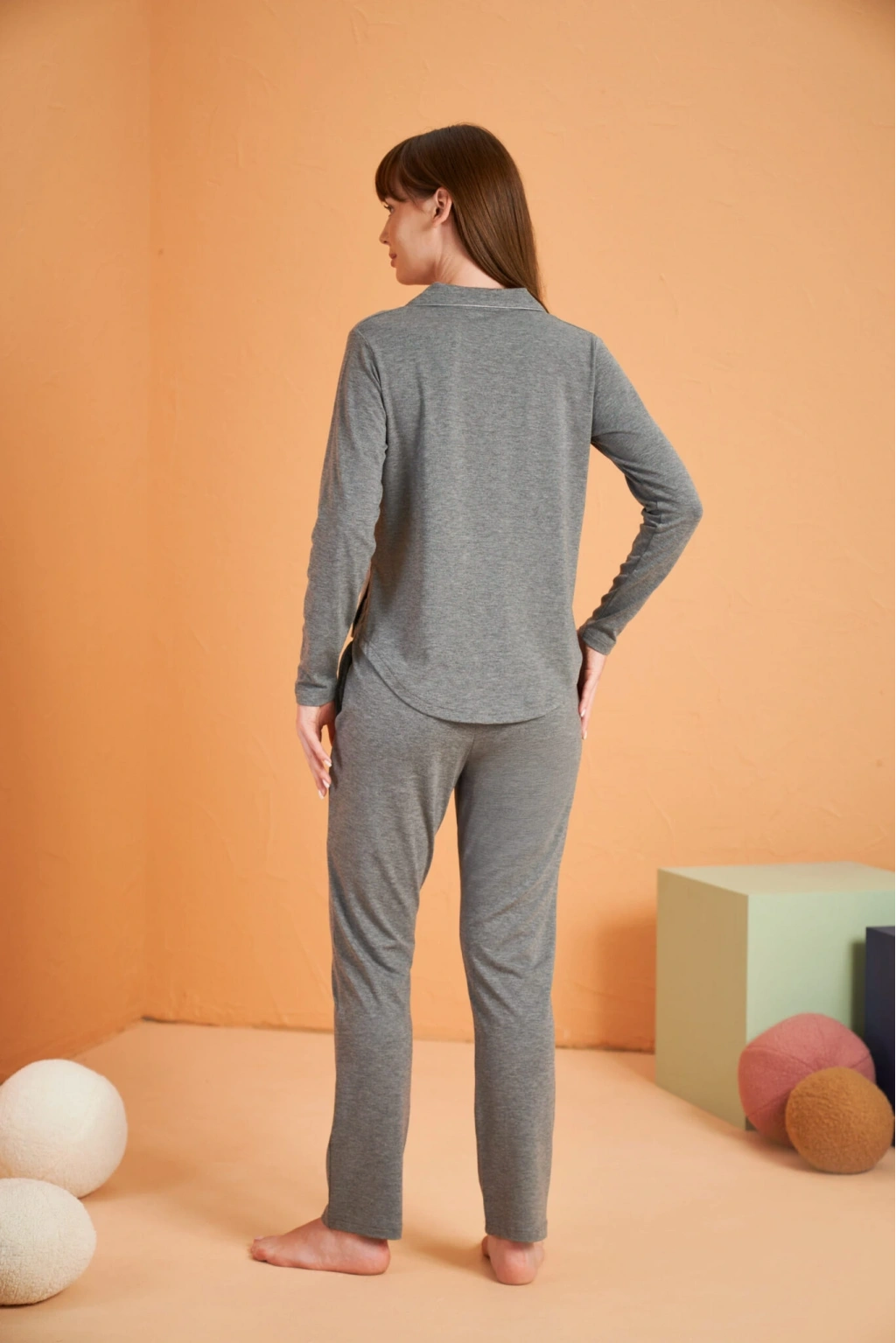 PJS 28049 Kadın Uzun Kol Önü Düğmeli Pijama Takım