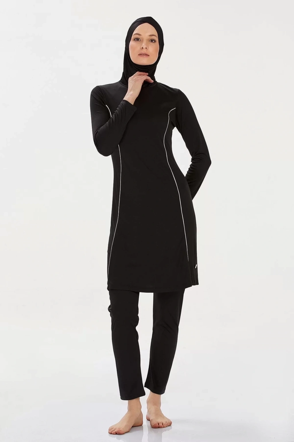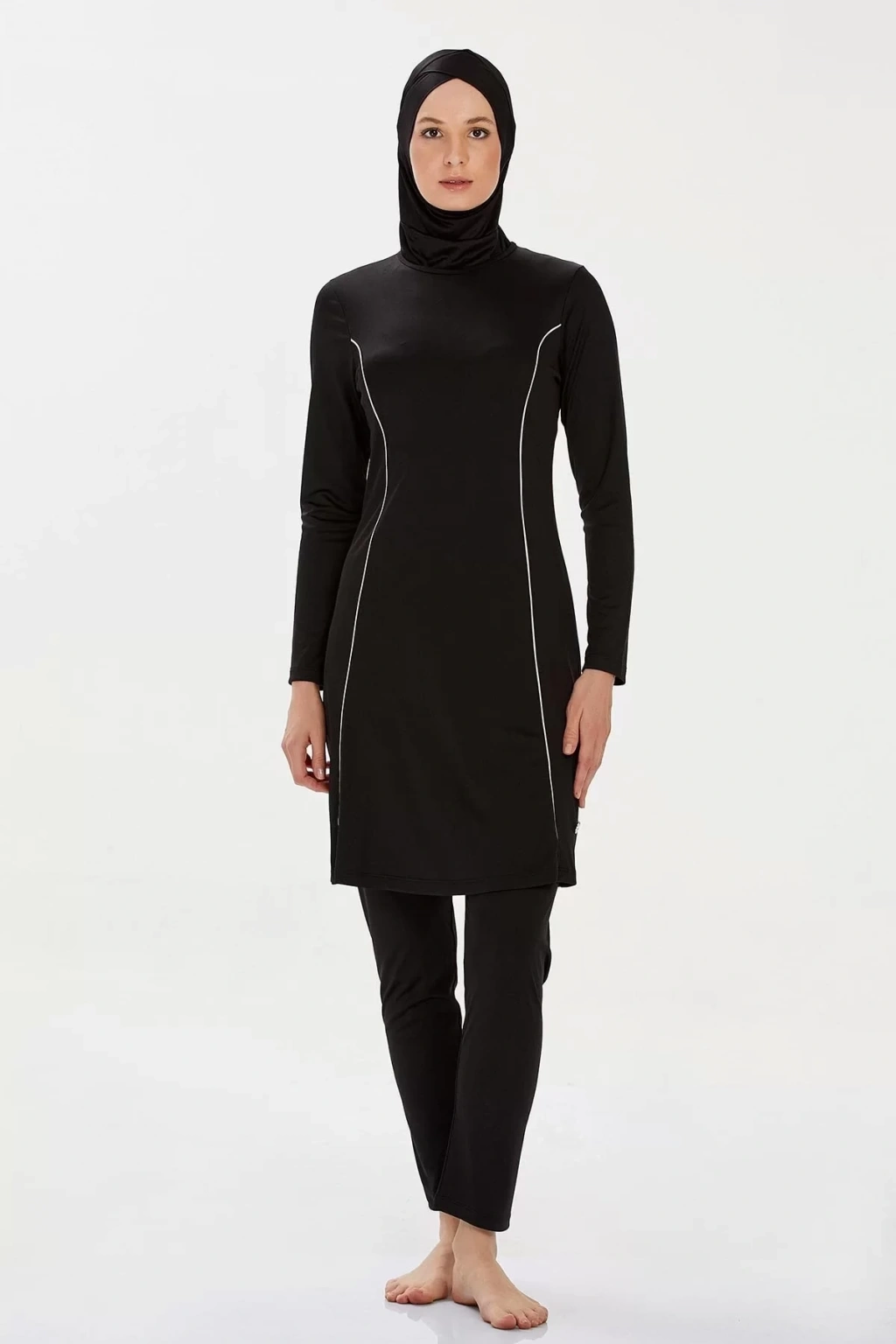 Rozamay Siyah 3 Parça Uzun Kol Büyük Beden Kadın Tesettür Mayo