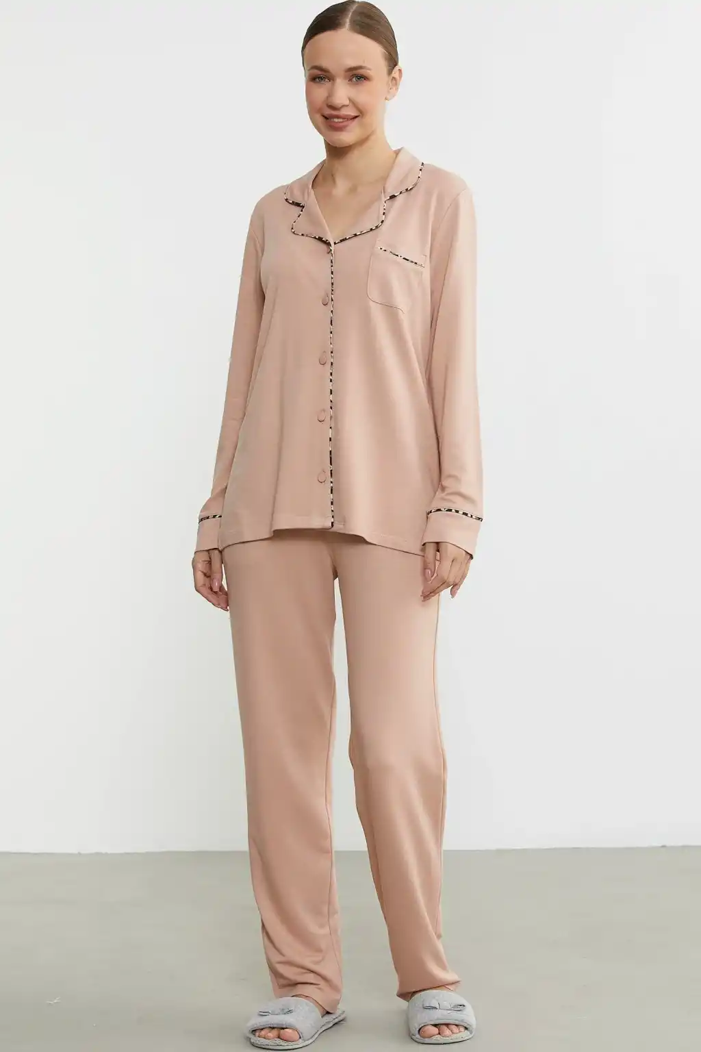 PJS 28049 Kadın Uzun Kol Önü Düğmeli Pijama Takım