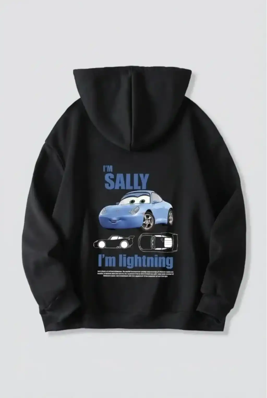 Sevgililer Günü Özel Kapüşonlu Araba Baskılı Oversize Sweatshirt - Siyah