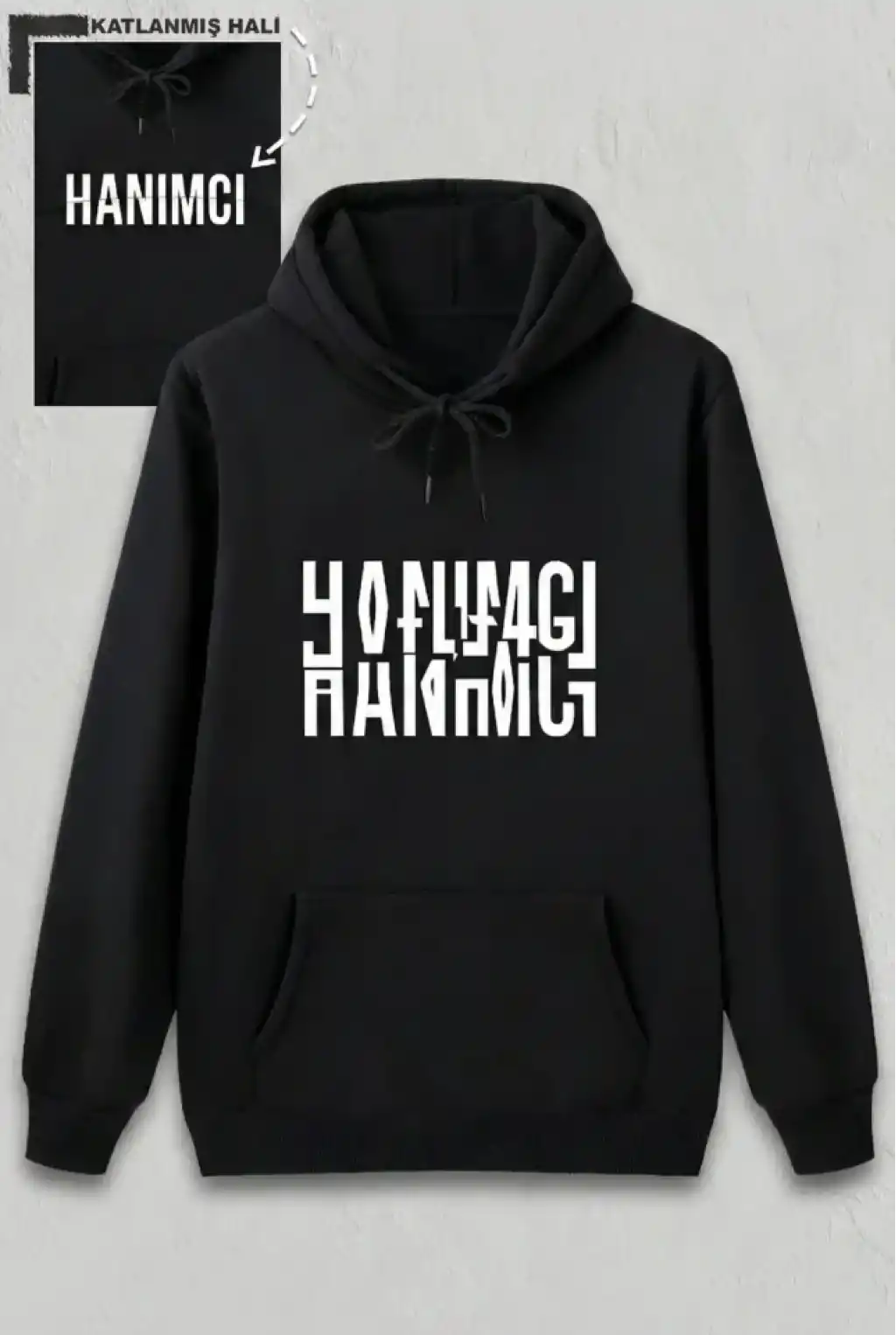 Sevgililer Günü Özel Kapüşonlu Hanımcı Baskılı Oversize Sweatshirt - Siyah