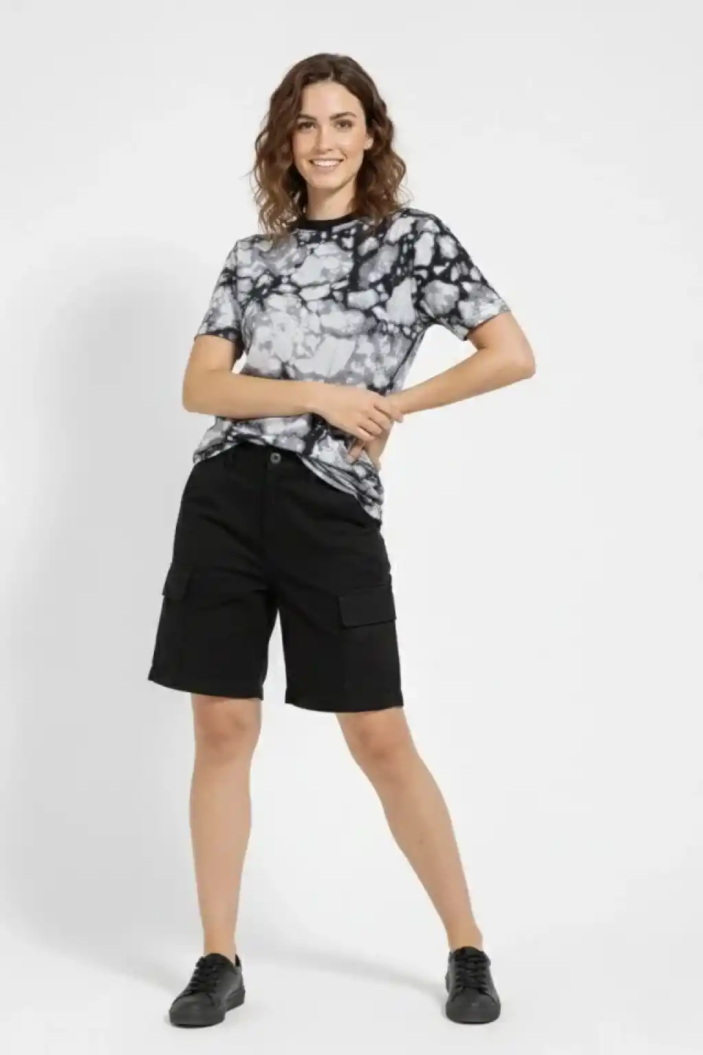 Siyah Gri Taş Desenli Tişört – Regular Kalıp, Bisiklet Yaka, Dijital Baskılı Modern Tasarım T-Shirt - Siyah