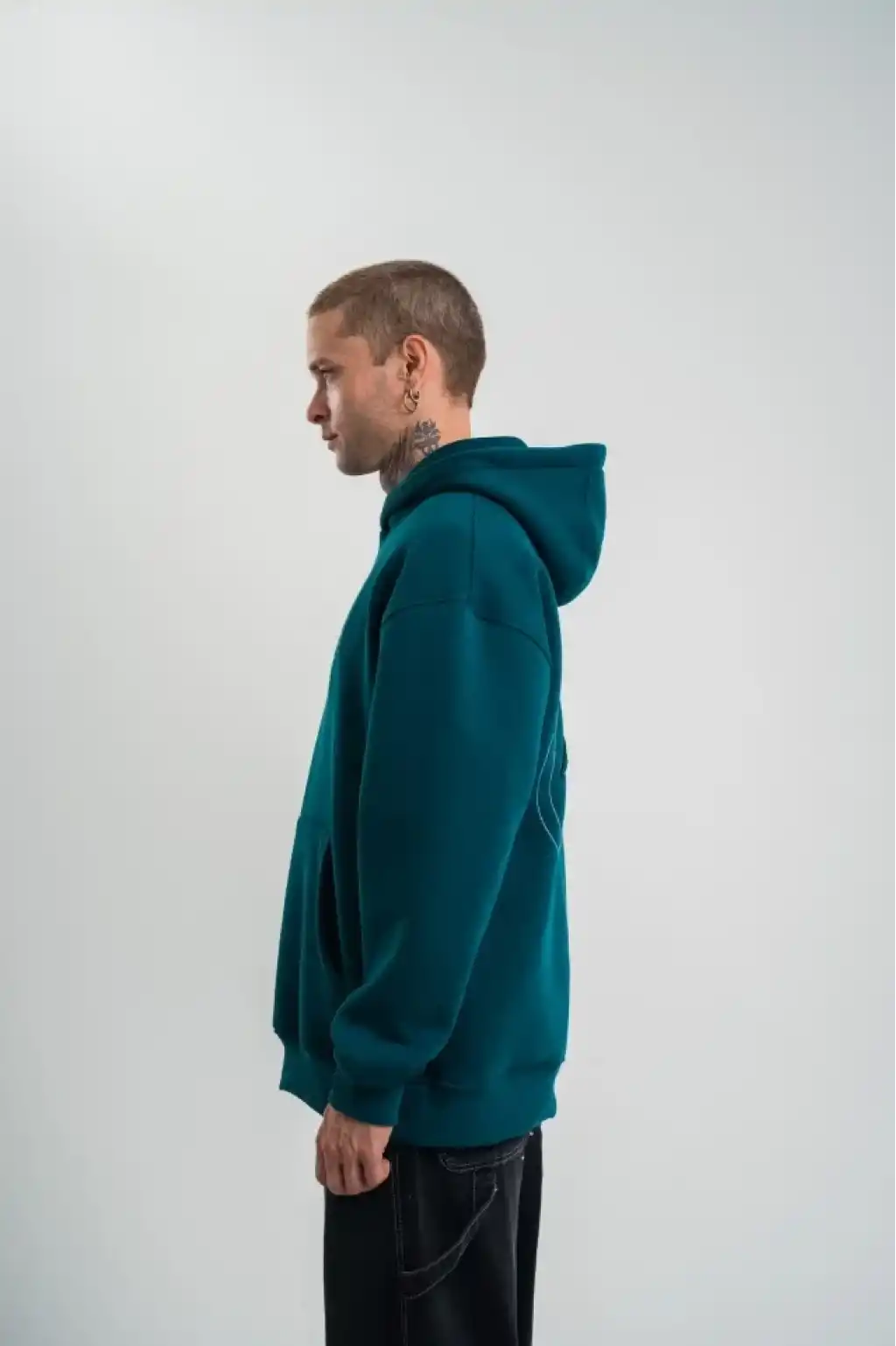 Unisex Üç İplik Kapşonlu Nakışlı SweatShirt - Koyu Deniz Yeşili