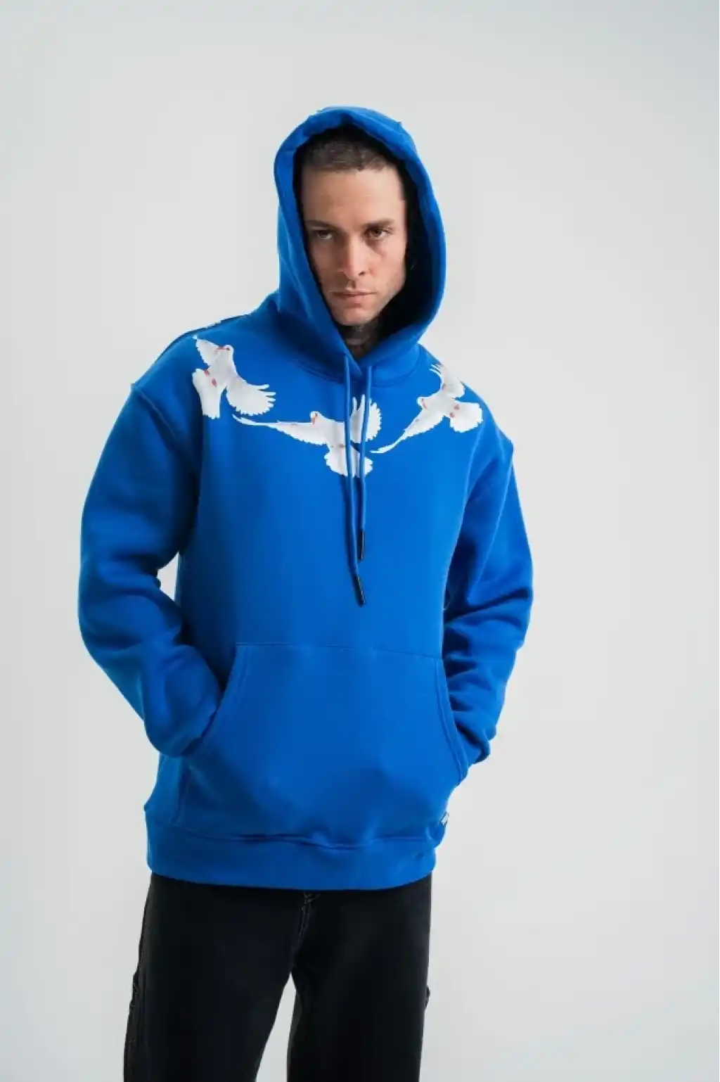 Erkek Baskılı Kapüşonlu Üç İplik Oversize Sweatshirt - Beyaz
