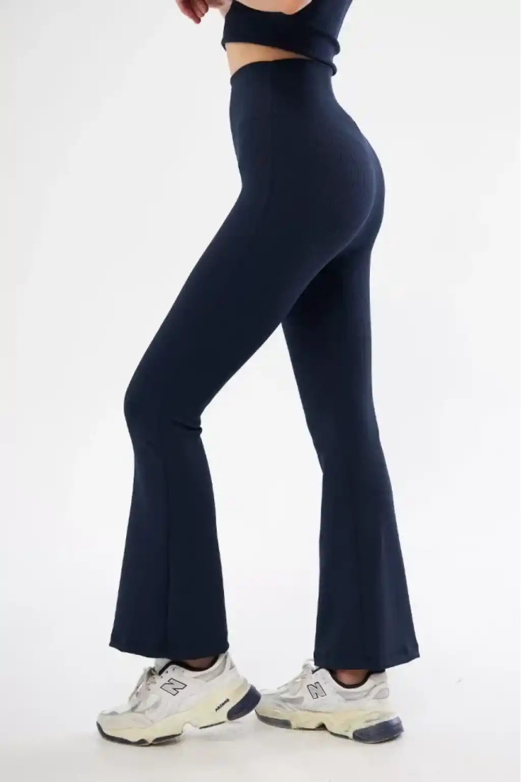 Yüksel Bel Fitilli İspanyol Paça Tayt - Lacivert